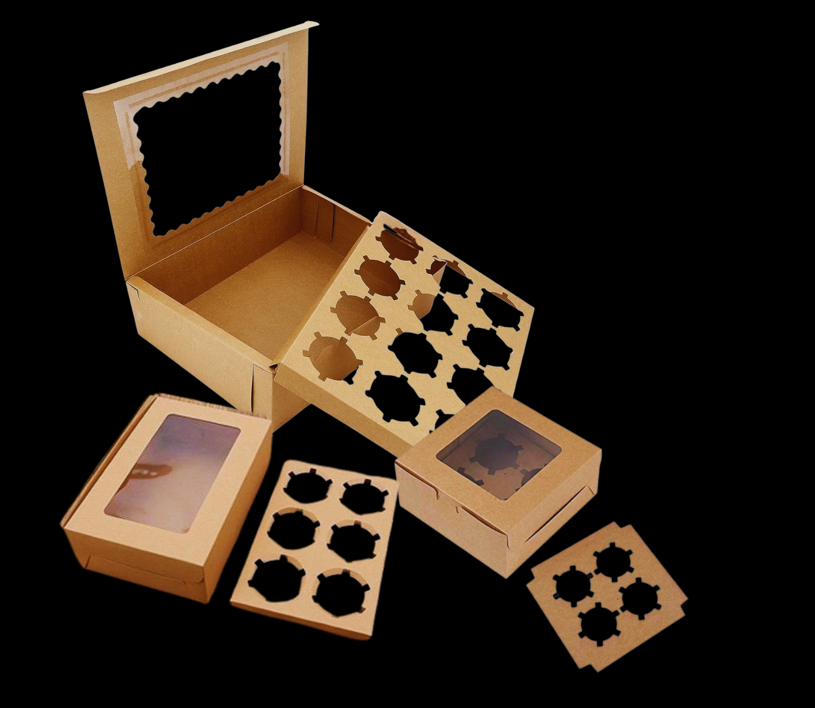 Brown Windowed Cup Cake boxes PLUS insert 16*16*7.5 (4s)